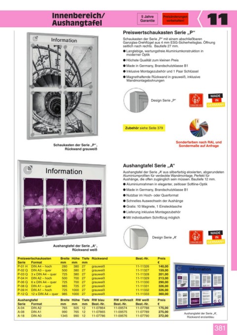 Preiswertschaukasten Breite Höhe Tiefe Rückwand Best.-Nr. Preis