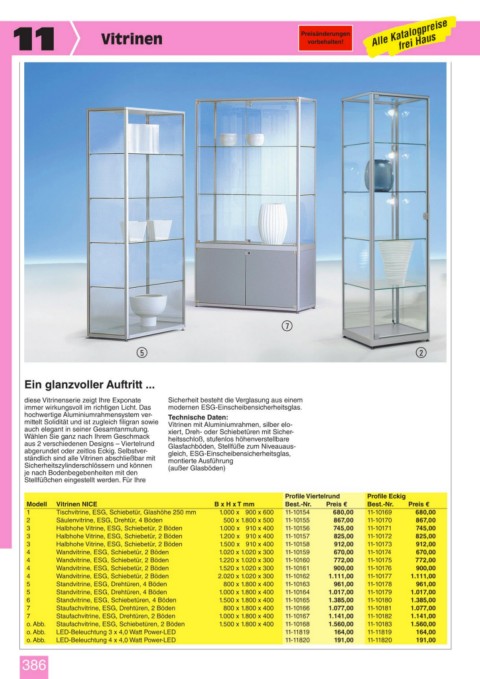 Modell Vitrinen NICE B x H x T mm Best.-Nr. Preis € Best.-Nr. Preis €