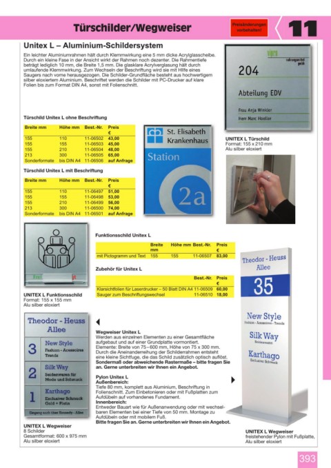 silber eloxiertem Aluminium. Beschriftet werden die Schilder mit PC-Drucker auf klare