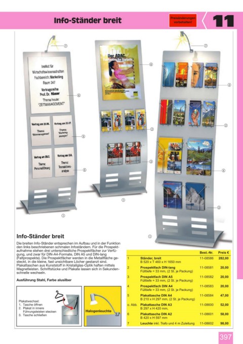 (Faltprospekte). Die Prospektfächer werden in die Metallfläche ge- 1 Ständer, breit 11-08586 282,00