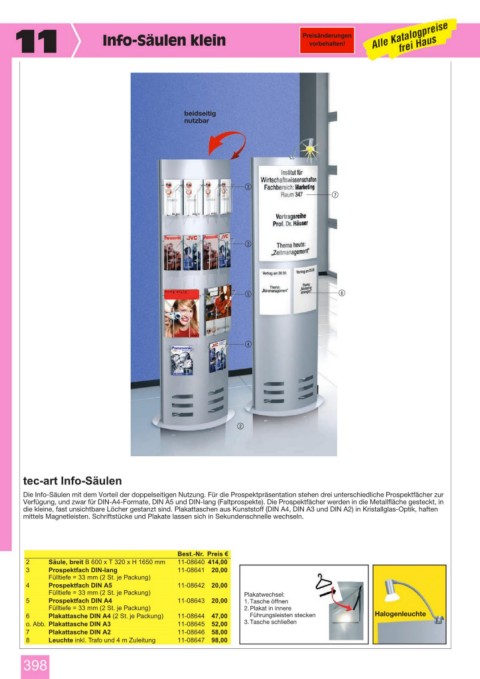 Die Info-Säulen mit dem Vorteil der doppelseitigen Nutzung. Für die Prospektpräsentation stehen drei unterschiedliche Prospektfächer zur