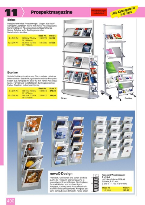auch: die Prospekt-Wandmagazine in mit 5 Acrylkästen DIN A4.