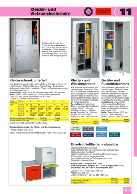 oder 2-farbig Korpus immer lichtgrau RAL 7035 Türen wahlweise Feuerrot Enzianblau Lichtblau Opalgrün