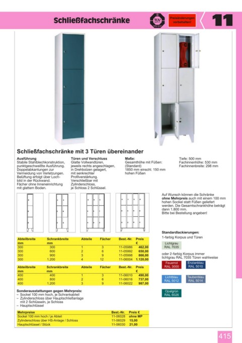 Abteilbreite Schrankbreite Abteile Fächer Best.-Nr. Preis RAL 3000 RAL 5010