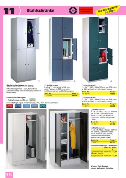 oder 2-farbig Korpus immer lichtgrau RAL 7035 Türen wahlweise