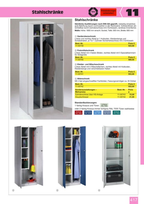 oder 2-farbig Korpus immer lichtgrau RAL 7035 Türen wahlweise