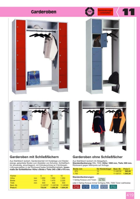 Garderoben mit Schließfächern Garderoben ohne Schließfächer