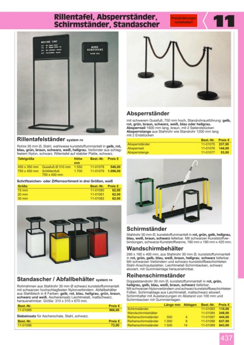 11-01086 73,00 Reihenschirmständer 1.500 14 11-01089 843,00