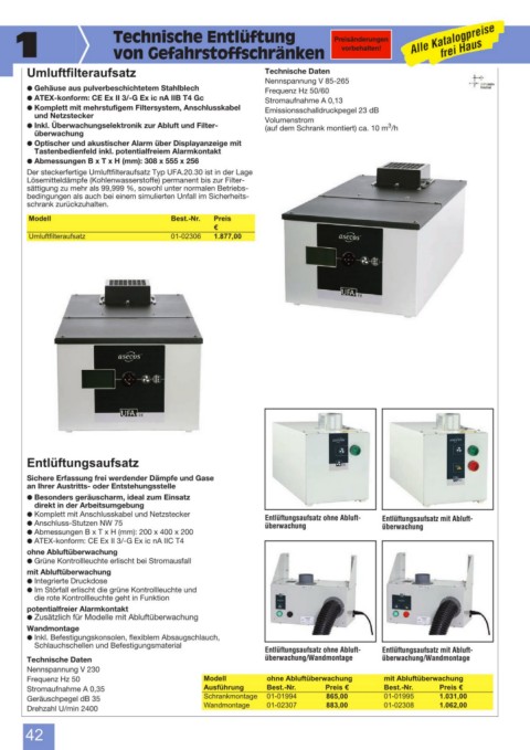 % Inkl. Überwachungselektronik zur Abluft und Filter- (auf dem Schrank montiert) ca. 10 m /h
