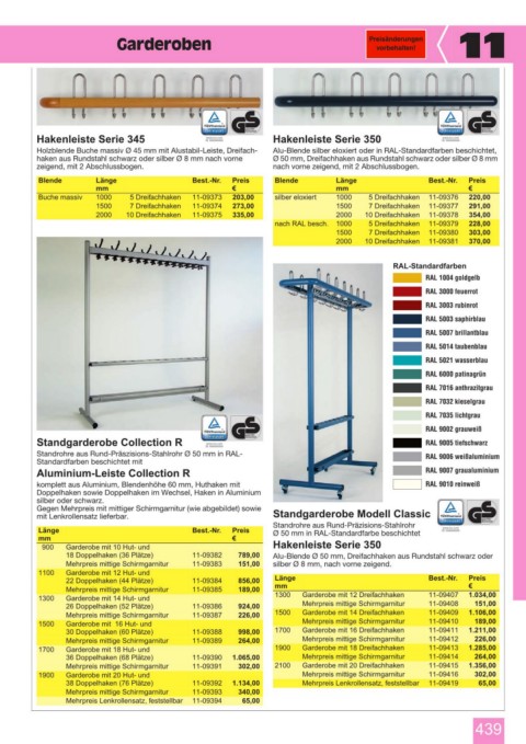30 Doppelhaken (60 Plätze) 11-09388 998,00 1700 Garderobe mit 16 Dreifachhaken 11-09411 1.211,00