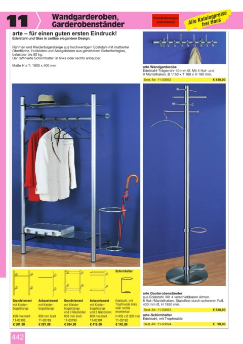 Grundelement Anbauelement Grundelement Anbauelement Edelstahl, mit 8 Hut-/Mantelhaken. Standfest durch schweren Fuß.