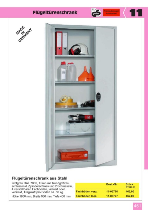 Höhe 1950 mm, Breite 930 mm, Tiefe 400 mm Fachböden lack. 11-03777 462,00