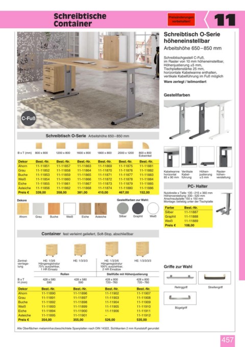 Schreibtisch O-Serie Arbeitshöhe 650 – 850 mm