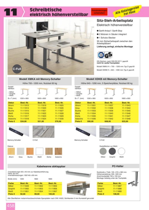 Höhe 700 – 1200 mm, Nutzlast 60 kg Höhe 640 – 1290 mm, 3 Speicherplätze, Nutzlast 80 kg