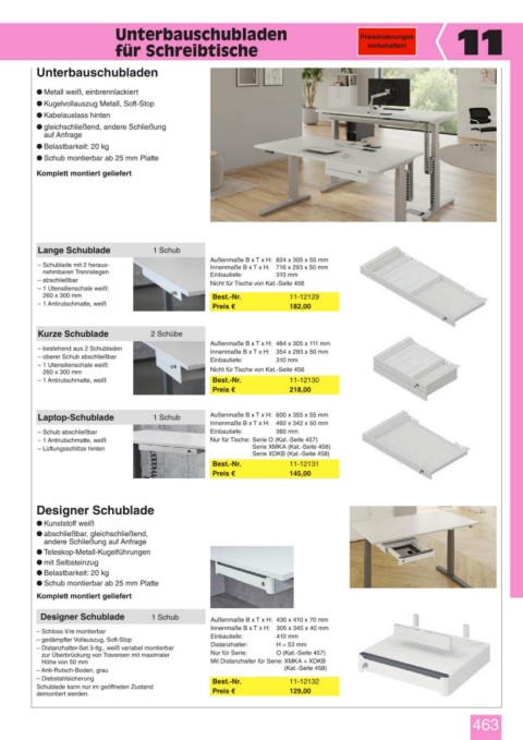 – abschließbar Nicht für Tische von Kat.-Seite 456