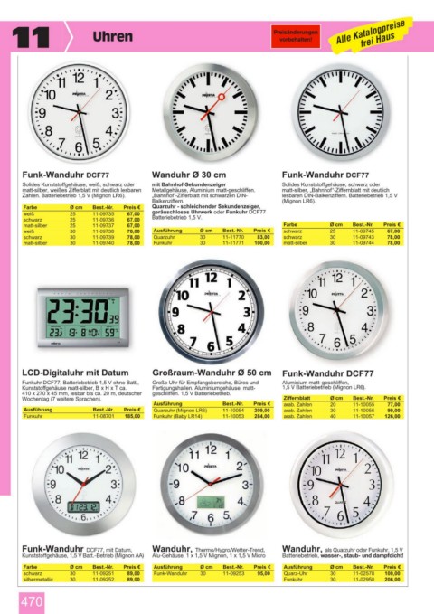 Funkuhr 11-08701 185,00 Funkuhr (Baby LR14) 11-10053 284,00 arab. Zahlen 40 11-10057 126,00
