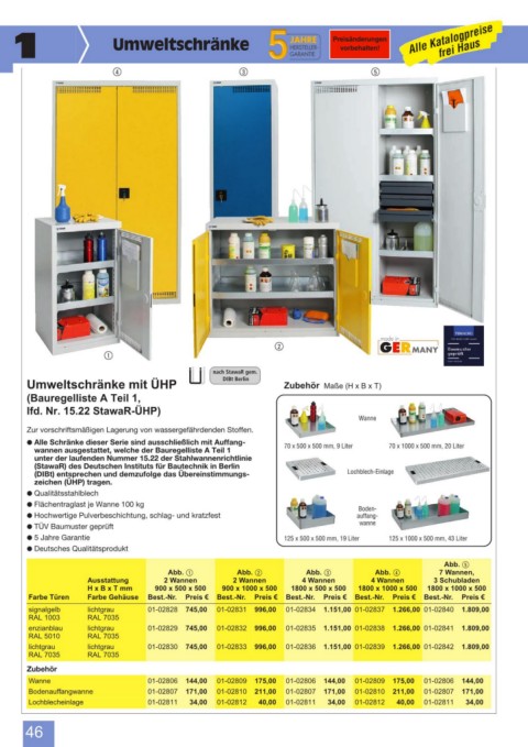 % Alle Schränke dieser Serie sind ausschließlich mit Auffang- 70 x 500 x 500 mm, 9 Liter 70 x 1000 x 500 mm, 20 Liter
