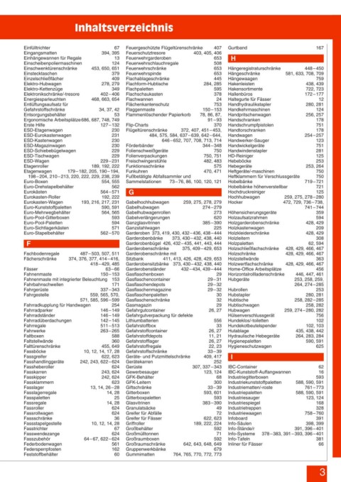 Faltboxen 588 Gefahrstoffdepots 11, 21 Hydraulische Hebegeräte 264, 283, 284
