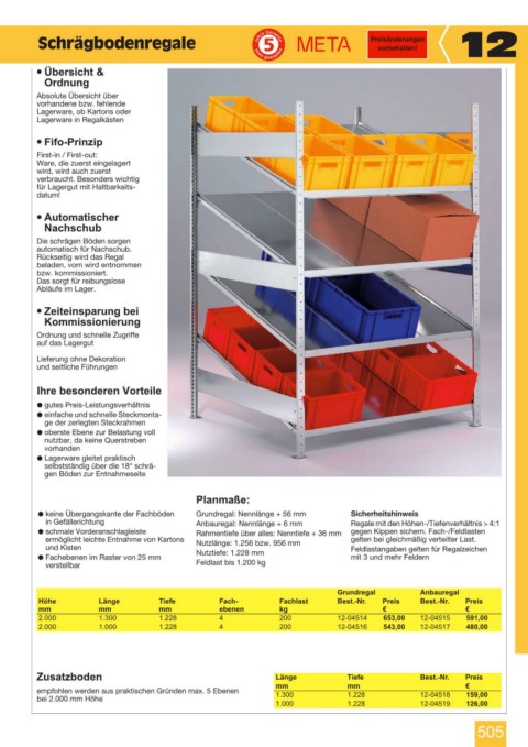 ermöglicht leichte Entnahme von Kartons Nutzlänge: 1.256 bzw. 956 mm gelten bei gleichmäßig verteilter Last.