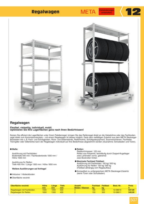 regal direkt zum Kommissionierplatz – mit einem Regalwagen ist dieses möglich. Dank dem vielfältigen Zubehör aus dem META Steckregal-