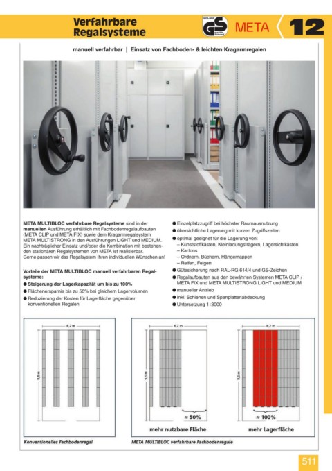 Vorteile der META MULTIBLOC manuell verfahrbaren Regal- ● Gütesicherung nach RAL-RG 614/4 und GS-Zeichen