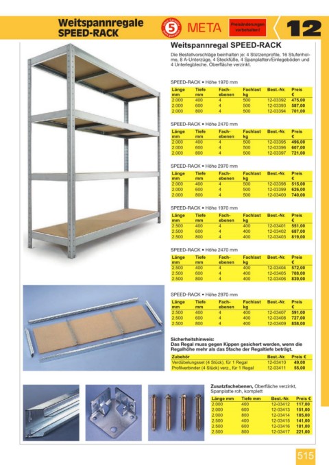 Länge Tiefe Fach- Fachlast Best.-Nr. Preis