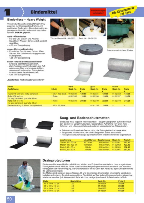 – Für alle Öle, Benzin und Alkohol. Tücher Bestell-Nr. 01-02331 Best.-Nr. 01-01155