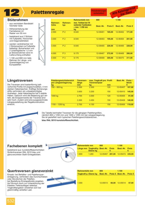 Längstraversen Palettengewichtsbereich Traversen- max. Tragkraft pro Profil Best.-Nr. Preis /