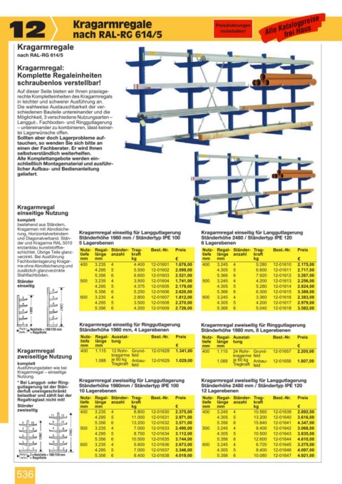 Kragarmregal 400 1.115 12 Rohr- Grund- 12-01628 1.341,00 400 1.115 24 Rohr- Grund- 12-01657 2.205,00