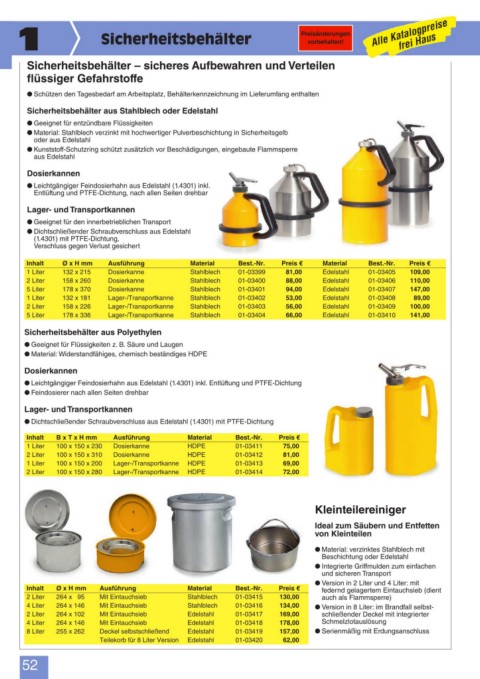 1 Liter 132 x 181 Lager-/Transportkanne Stahlblech 01-03402 53,00 Edelstahl 01-03408 89,00