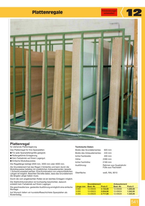 Das Plattenregal für Ihre Spanplatten: Breite des Grundelementes: 920 mm
