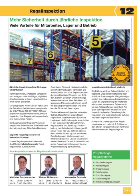 die Betriebssicherheitsverordnung sowie hen die Sicherheit Ihres Lagers. Ende der Inspektion erhalten Sie eine