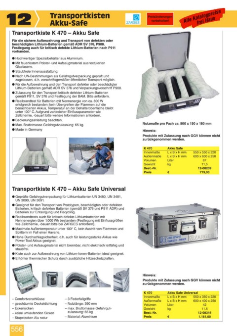 wie Zellchemie, -bauart bitte bei ZARGES anfordern).