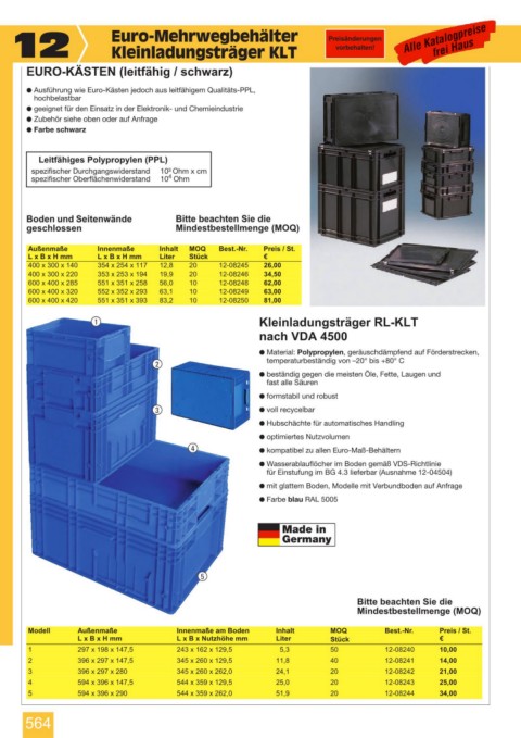 % Ausführung wie Euro-Kästen jedoch aus leitfähigem Qualitäts-PPL,