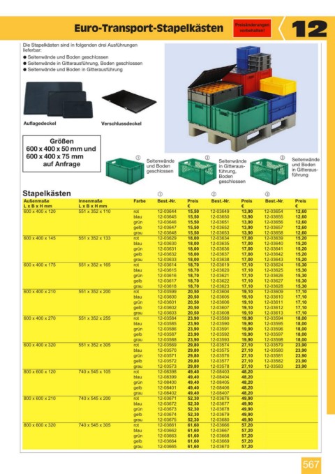 600 x 400 x 120 551 x 352 x 110 rot 12-03644 15,50 12-03649 13,90 12-03654 12,60