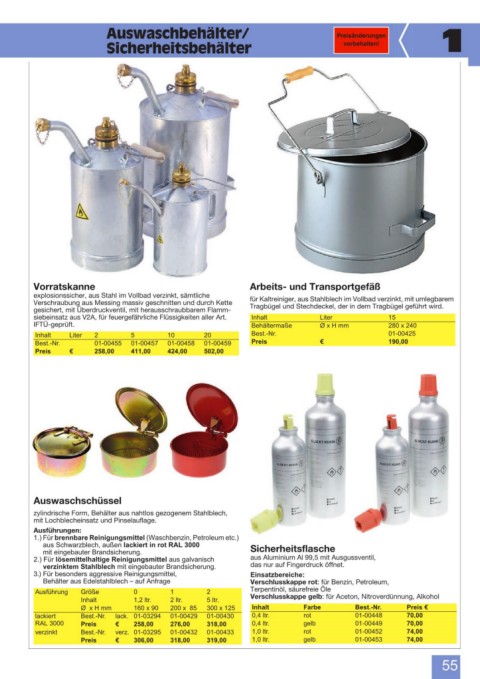 1.) Für brennbare Reinigungsmittel (Waschbenzin, Petroleum etc.)