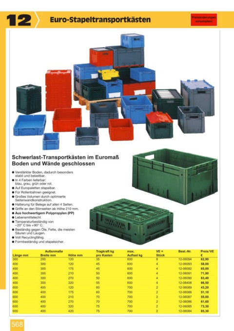 12 Euro-Stapeltransportkästen