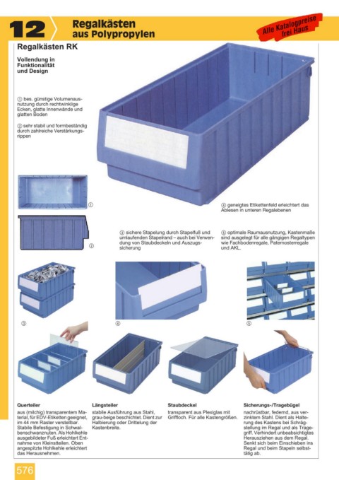 umlaufenden Stapelrand – auch bei Verwen- sind ausgelegt für alle gängigen Regaltypen