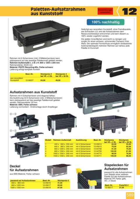 Paletten-Aufsatzrahmen Preisänderungen 12