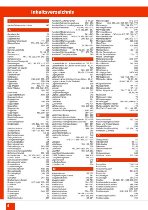 Kantenschutz 134, 753 Kunststoff-Transportbehälter 585 Mobile Raumeinheiten 172 – 175