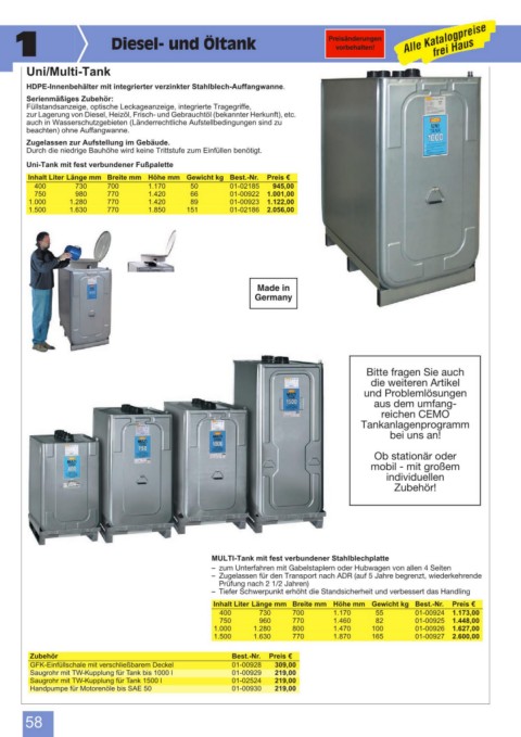 MULTI-Tank mit fest verbundener Stahlblechplatte