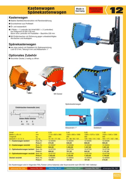 4 – Spänekastenwagen verzinkt Best.-Nr. 12-07727 12-07728 12-07729 12-07730