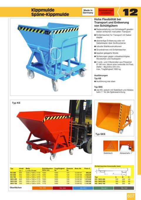 KS 700 700 1345 x 1200 x 1275 1175 1000 132 12-06149 1.105,00 Typ A B C