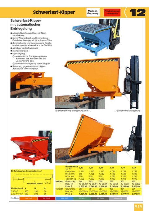 Muldeninhalt A B C verzinkt Gewicht kg 263 304 353 400 464 501