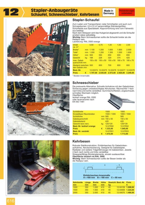 Kehrbreite Länge Breite Höhe Gewicht Best.-Nr. Preis