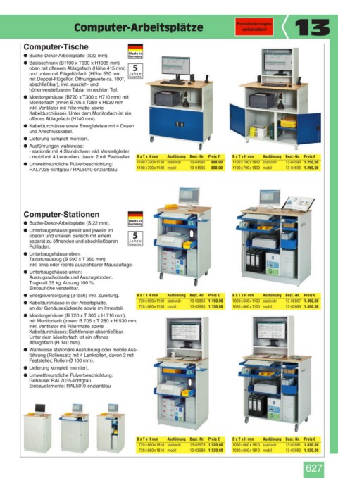 ● Kabeldurchlässe in der Arbeitsplatte, 720 x 660 x 1100 stationär 13-02863 1.150,00 1030 x 660 x 1100 stationär 13-02867 1.450,00
