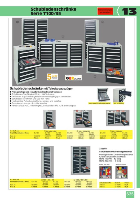 Anzahl Schubladen x H mm 17 x 100 13 x 100 9 x 100 34 x 100 26 x 100 18 x 100