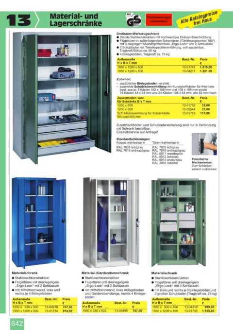 1950 x 1200 x 500 13-01734 914,00 1950 x 930 x 500 13-09495 757,00 1950 x 1200 x 500 13-01735 1.155,00