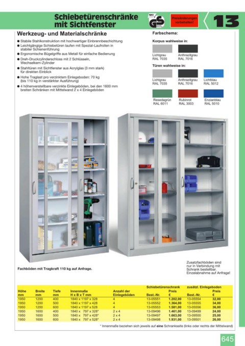 Werkzeug- und Materialschränke Farbschema: