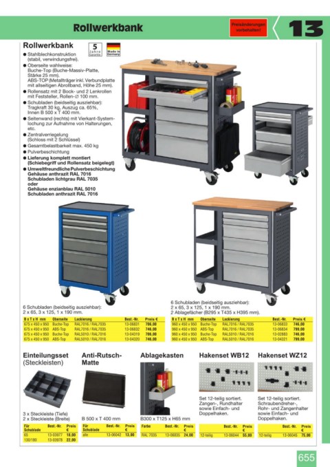 675 x 450 x 950 Buche-Top RAL7016 / RAL7035 13-06831 706,00 960 x 450 x 950 Buche-Top RAL7016 / RAL7035 13-06833 746,00